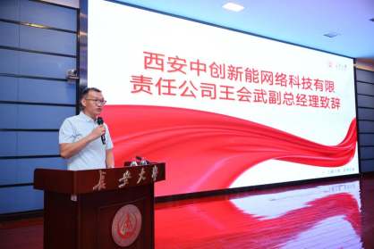 颁奖会第三项,2025年长安大学数学建模校赛赞助单位“西安中创新能网络科技有限责任公司”王会武副总经理致辞,他祝贺获奖师生,并高度赞赏长安大学学子勇于探索的精神。他指出,中创新能重视数学建模在新能源与智能科技领域的应用,将持续深化校企合作,为学子提供实践平台。最后,他邀请师生到企业交流,并预祝大会成功。