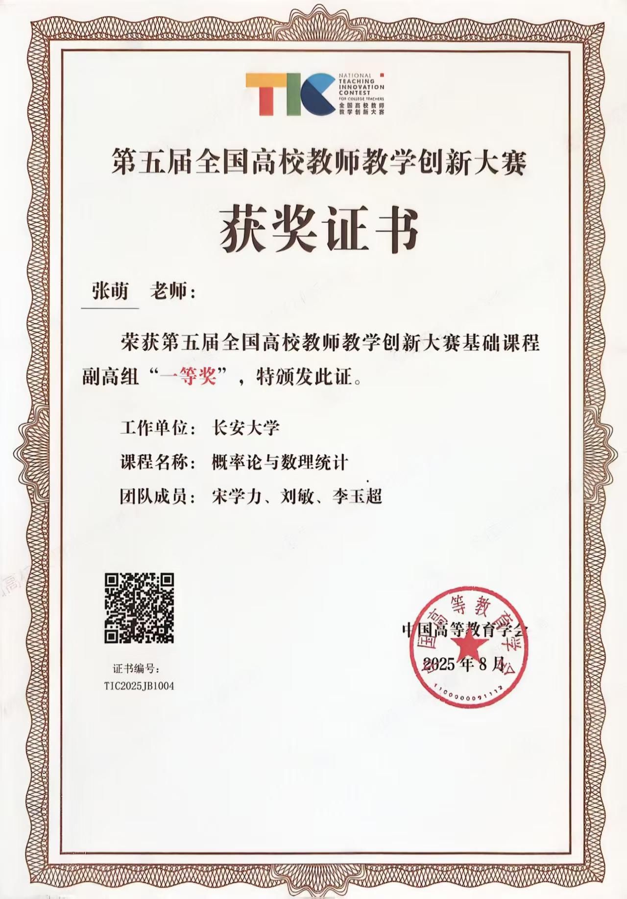 8月16日至19日,由教育部高等教育司指导、中国高等教育学会主办的第五届全国高校教师教学创新大赛现场评审在北京理工大学举行。经过激烈比拼,我校bat365官网登录入口数学学科张萌副教授荣获基础课程副高组一等奖,经济与管bat365官网登录入口席岳婷教授荣获新文科正高组三等奖。这是我校继2024年第四届大赛以来,再次获得全国赛最高奖励。